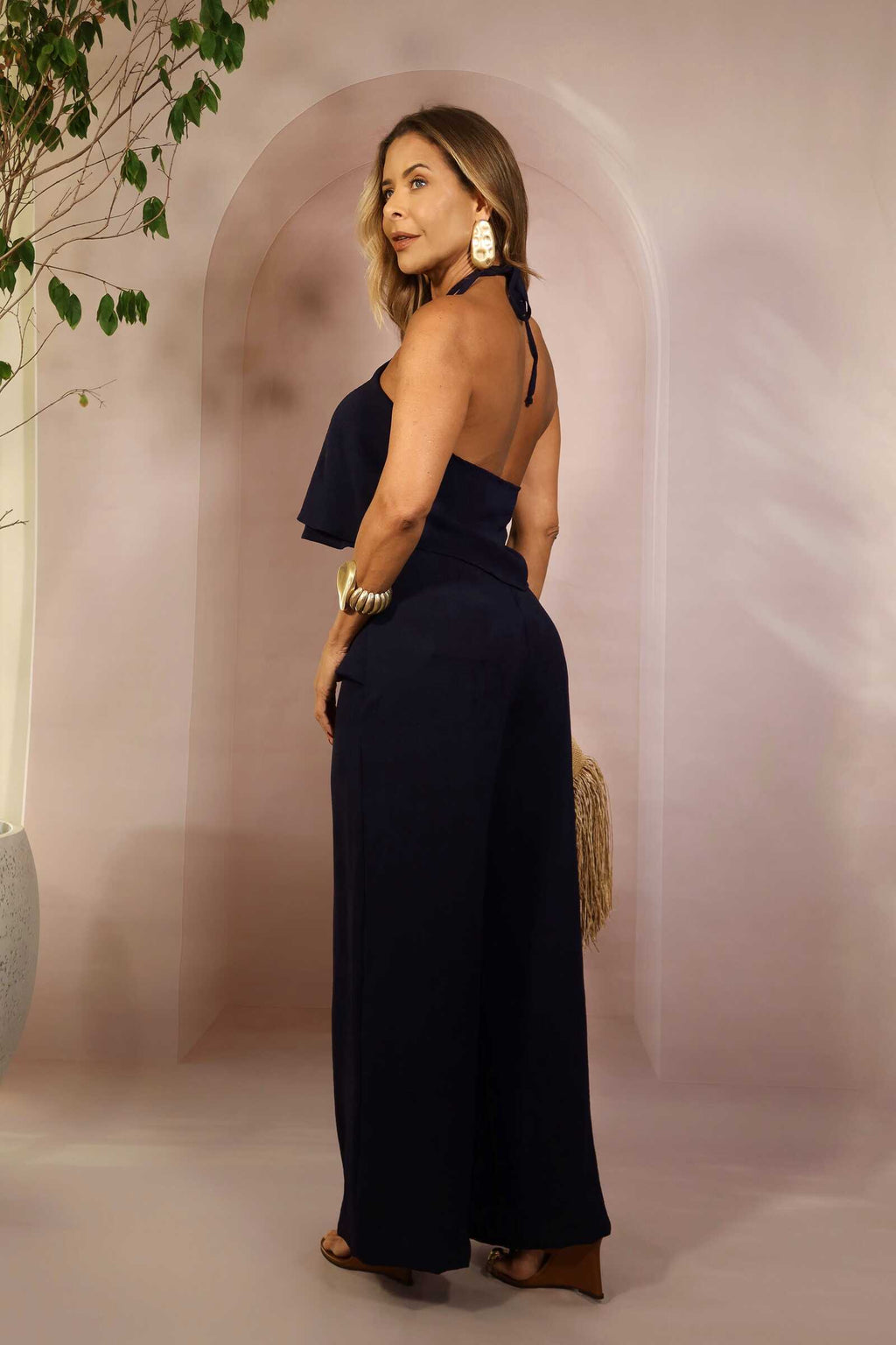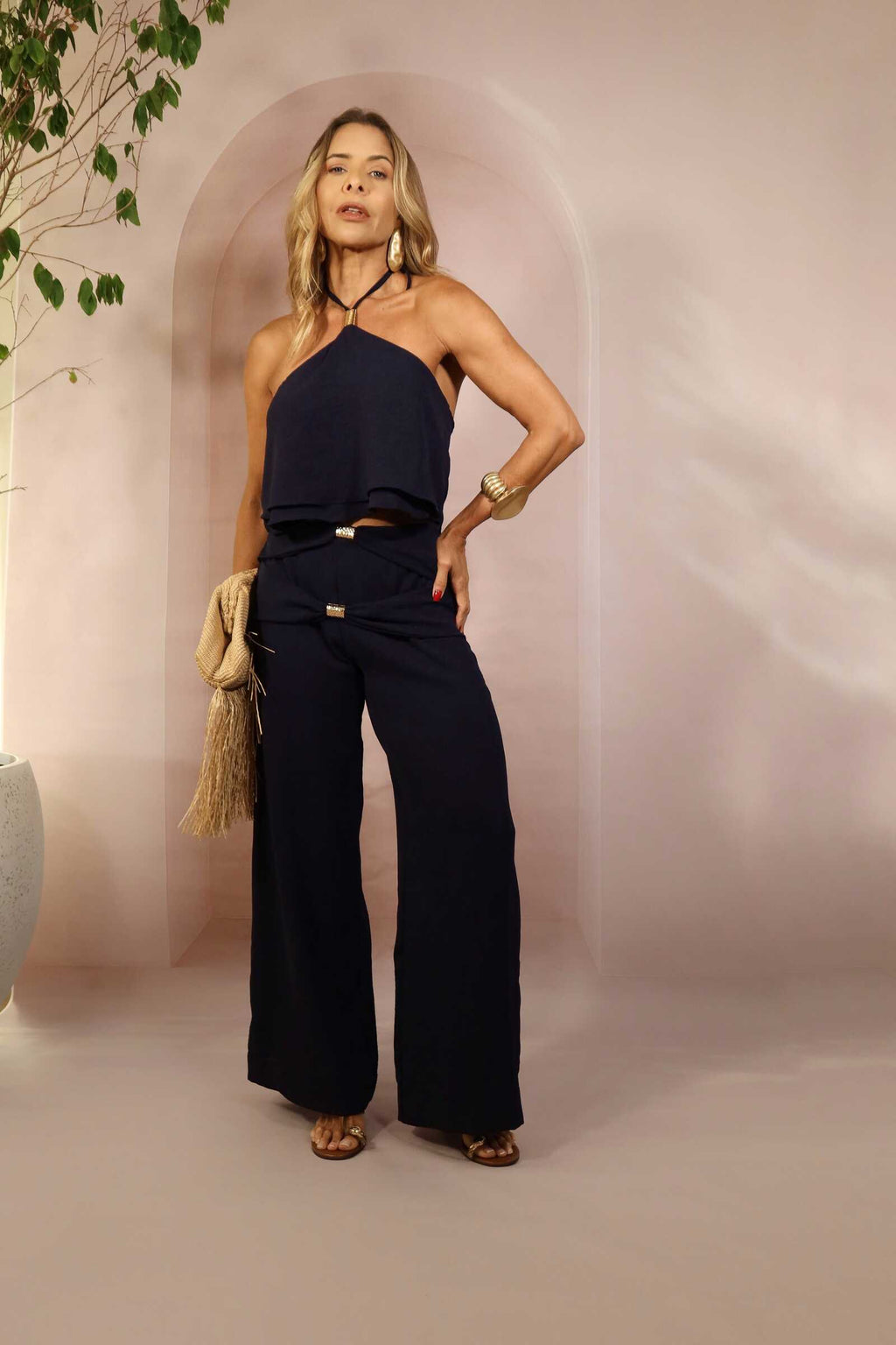 Confeccionado em tecido leve, proporciona conforto e movimento, sendo ideal para compor looks tanto para o dia quanto para a noite.