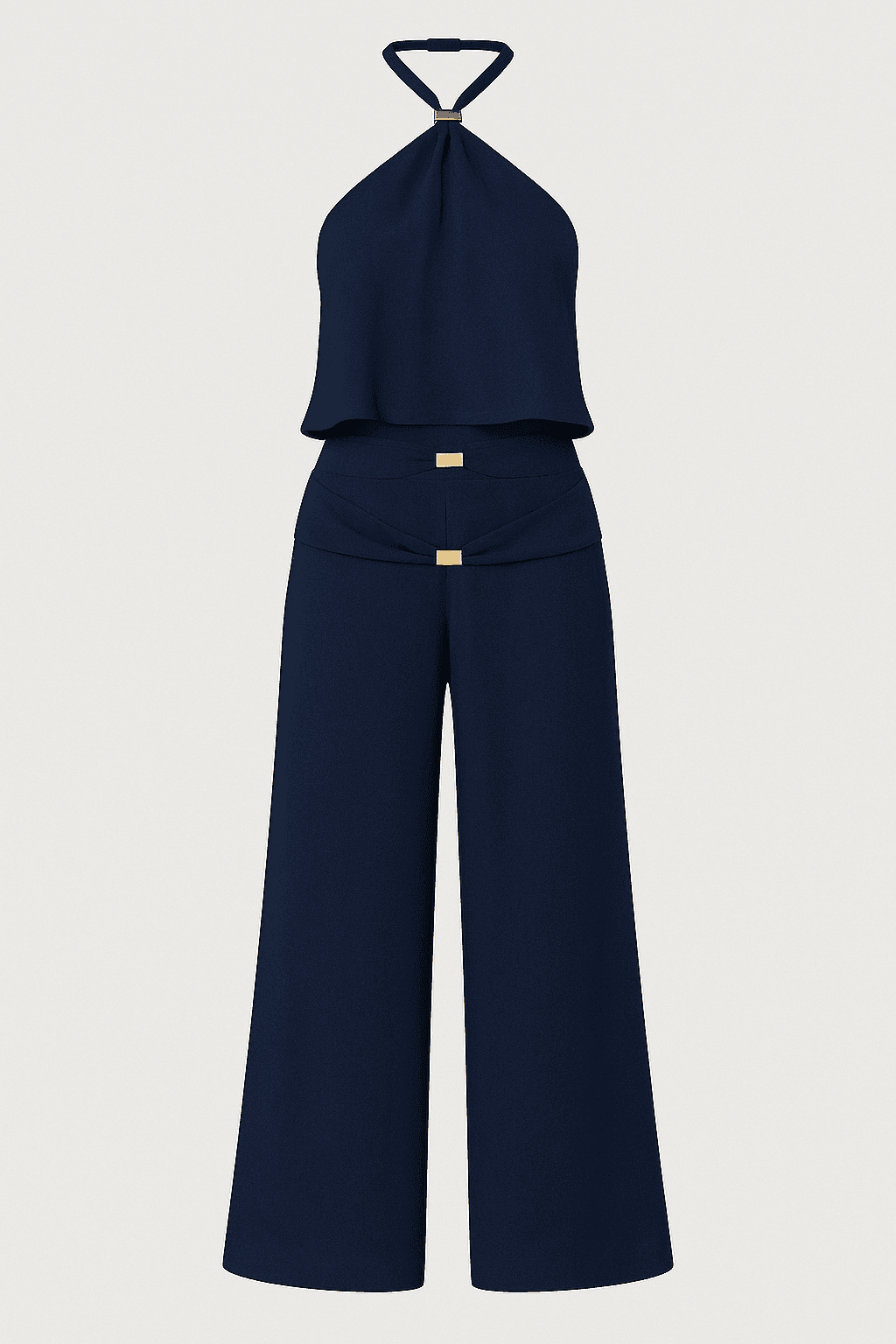 - Detalhe em metal dourado no decote e cintura