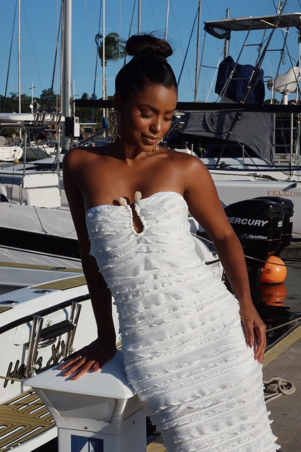 Uma peça de impacto, pensado para mulheres que buscam elegância, presença e sofisticação. Com modelagem tomara-que-caia e corpo todo trabalhado em textura tridimensional, o vestido valoriza a silhueta com um caimento impecável, moderno e extremamente feminino. O destaque fica por conta do recorte frontal delicado e do acabamento texturizado em camadas, que cria profundidade, movimento e um visual luxuoso. O comprimento longo alonga a figura e traz imponência, enquanto o branco ilumina a produção e realça qualquer tom de pele. Perfeito para eventos especiais, celebrações à beira-mar, festas de fim de ano ou ocasiões que pedem um look marcante e inesquecível.