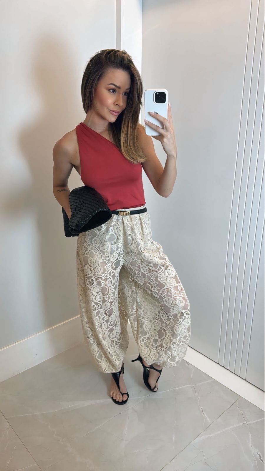 O design de um ombro só traz um ar sofisticado e atual, tornando a peça versátil para composições que vão do casual chic ao elegante.