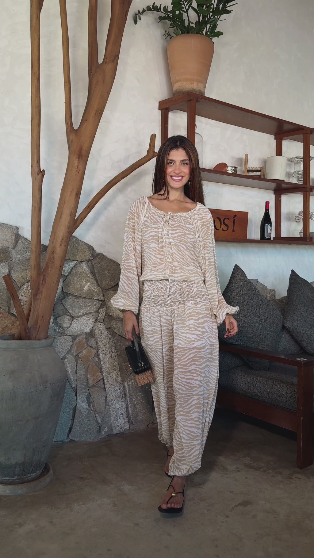 O Macacão Savane traduz elegância com leveza. Sua modelagem ampla e fluida alonga a silhueta, enquanto o caimento solto garante conforto e movimento. O decote com amarração valoriza o colo e permite ajuste personalizado, trazendo versatilidade para diferentes ocasiões.