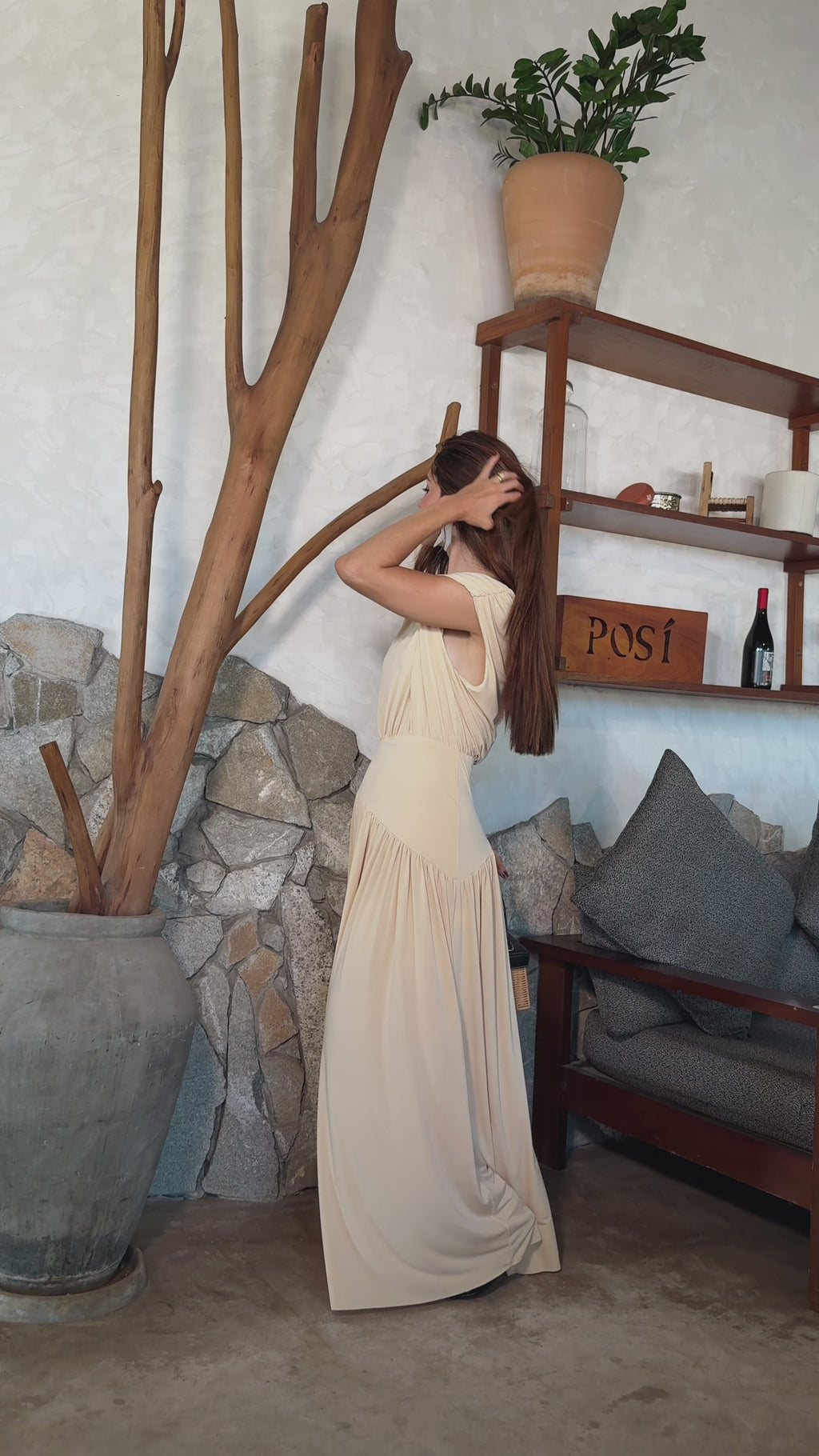 O Vestido Nuance confeccionado em malha fria tem caimento fluido, que garante conforto e movimento natural ao corpo, o recorte assimétrico na saia dá um charme especial à peça.