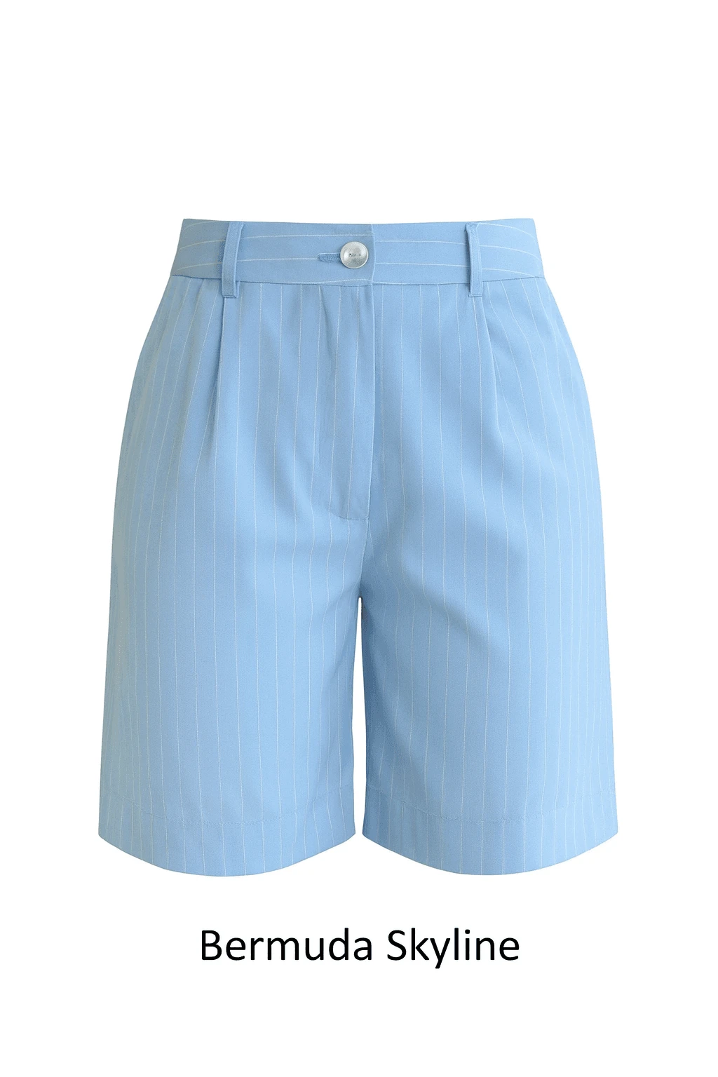 A Bermuda Skyline é a escolha perfeita para quem busca conforto aliado à elegância. Feita em tecido leve e sofisticado, traz caimento solto e fluído, ideal para dias quentes. O design com listras verticais, cós estruturado e bolsos laterais funcionais proporciona praticidade sem abrir mão do estilo.