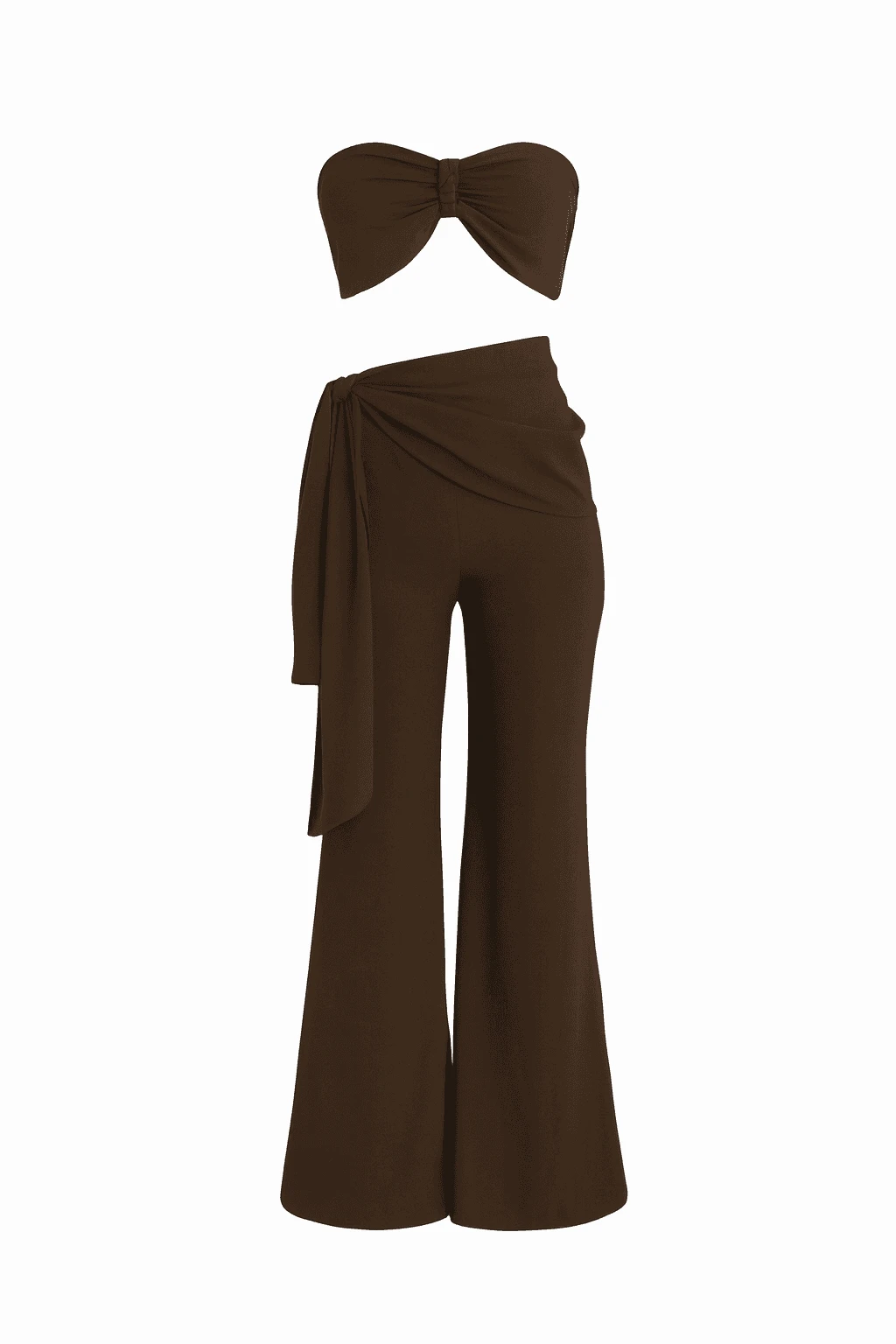 Elegância e ousadia em um look só. O Conjunto Sorella é a escolha ideal para quem busca um visual moderno, fresco e cheio de personalidade. Composto por um top faixa estruturado com detalhe de nó frontal e parte traseira em lastex, proporciona ajuste perfeito ao corpo com muito conforto.