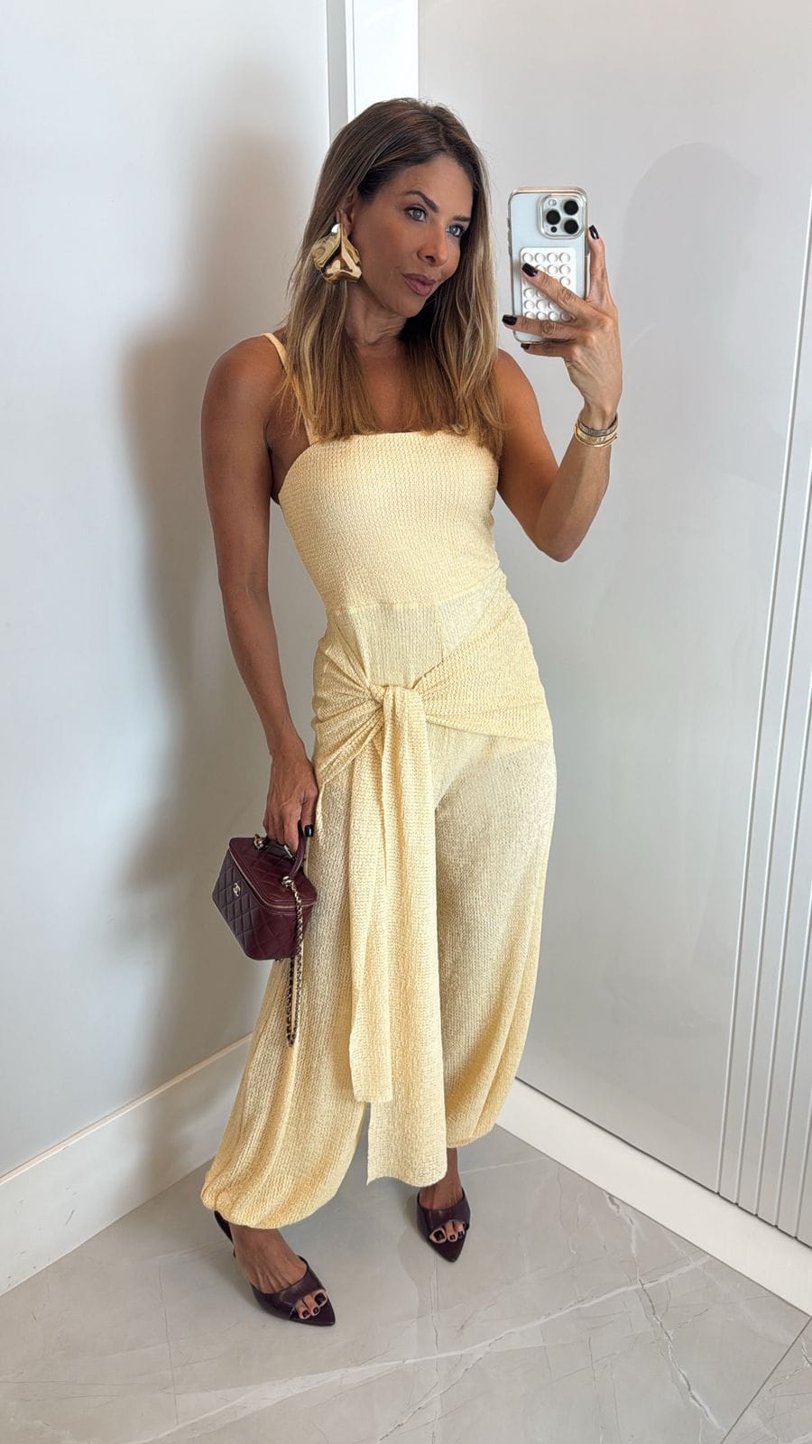 Conforto, estilo e elegância em uma única peça. O Macacão Doce Brisa é confeccionado em malha texturizada de toque macio e caimento leve, ideal para quem busca praticidade sem abrir mão do charme.