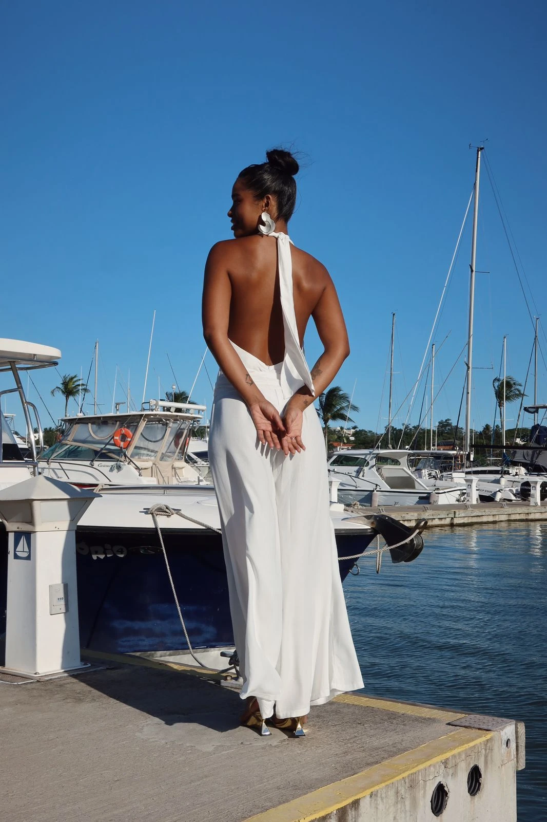 O MACACÃO SALINAS traz a mistura perfeita entre elegância, leveza e um visual resort sofisticado. Confeccionado em tecido leve e fluido, ele possui decote transpassado, que valoriza o colo com delicadeza, e amarra no pescoço, criando um caimento impecável.