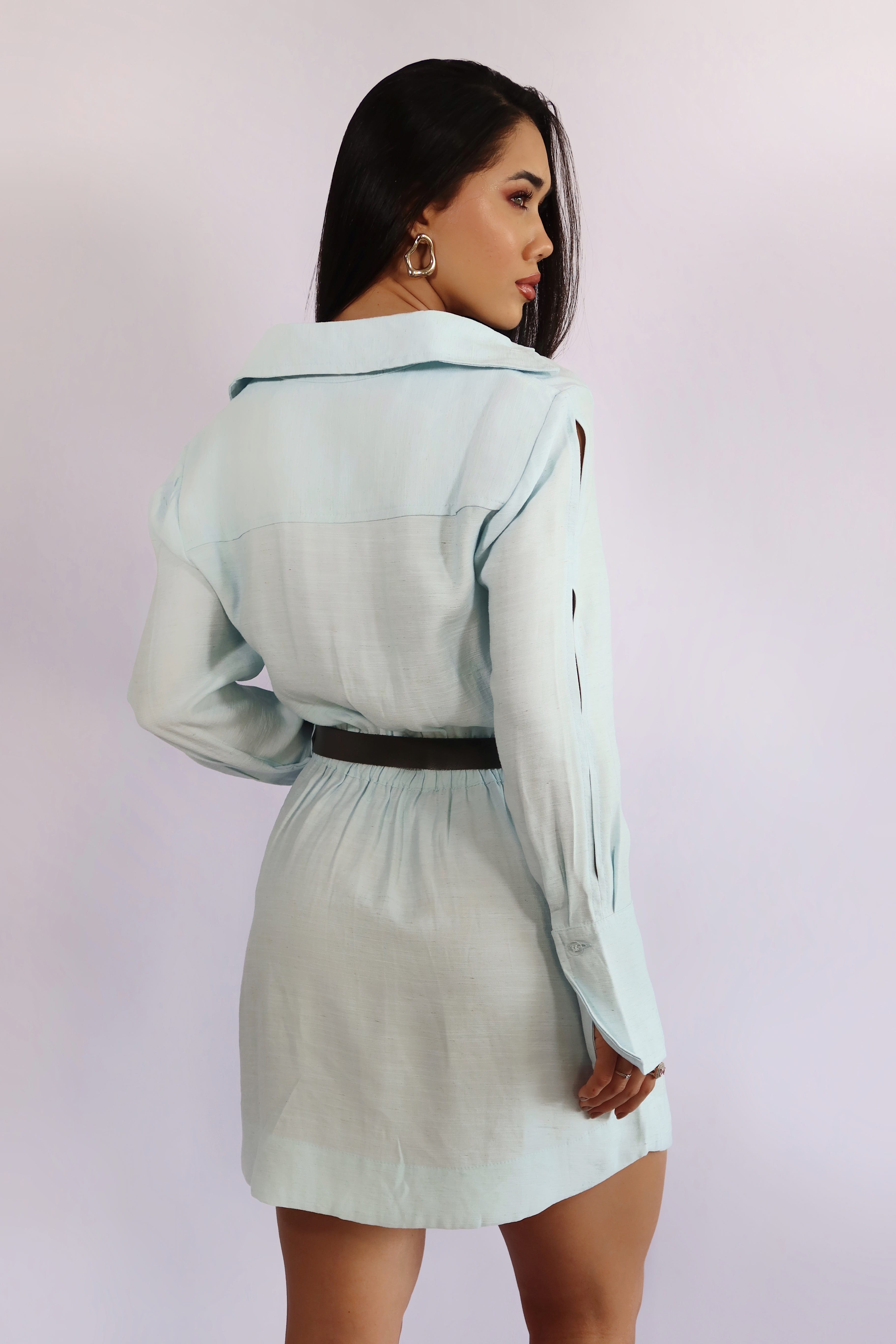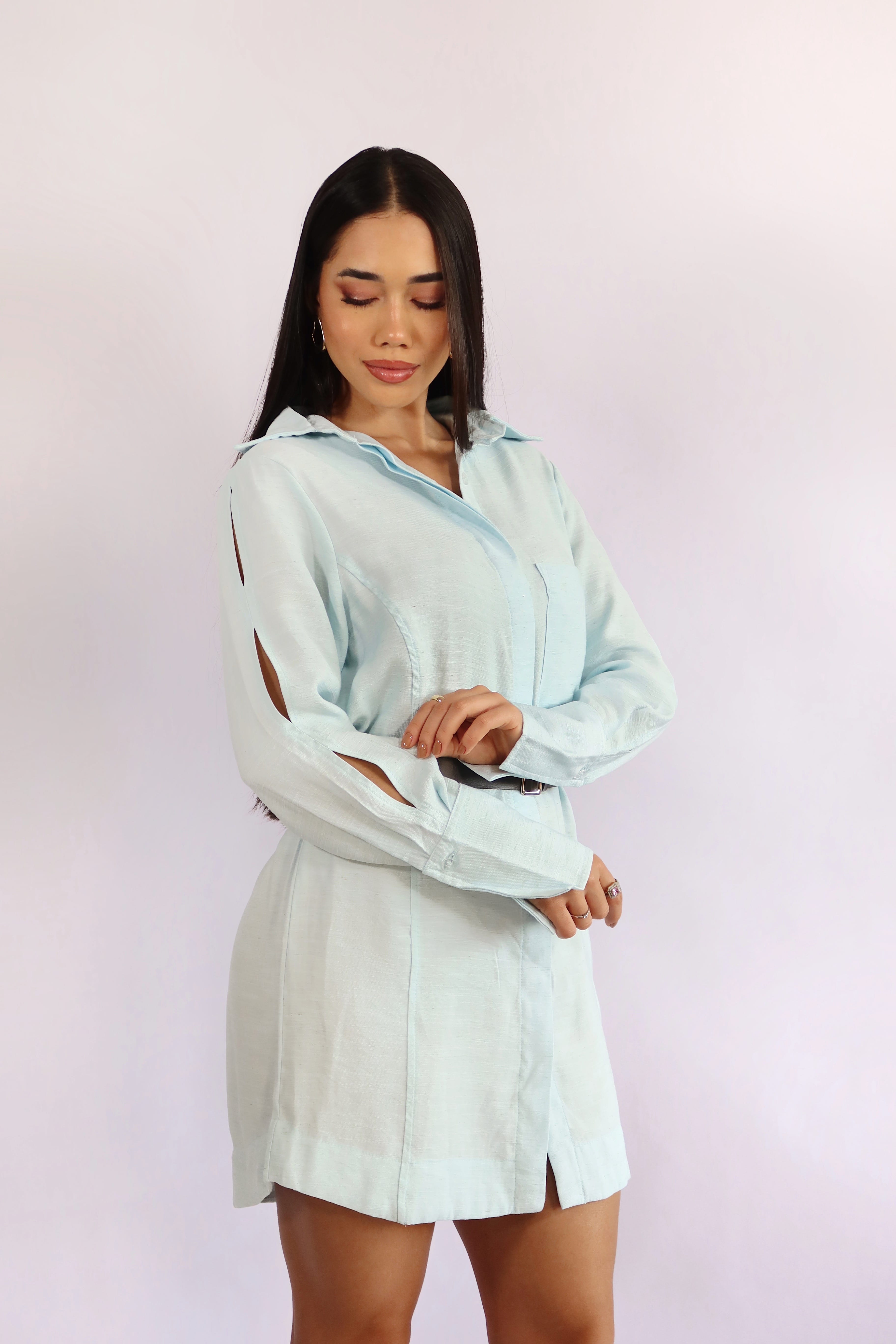 Acompanha cinto faixa removível para ajuste na cintura, permitindo usar o vestido mais solto ou acinturado, conforme a proposta do look. A cor azul claro suave adiciona frescor e delicadeza à peça, tornando-a perfeita para ocasiões casuais chiques, encontros especiais e até mesmo ambientes de trabalho com um toque fashionista.